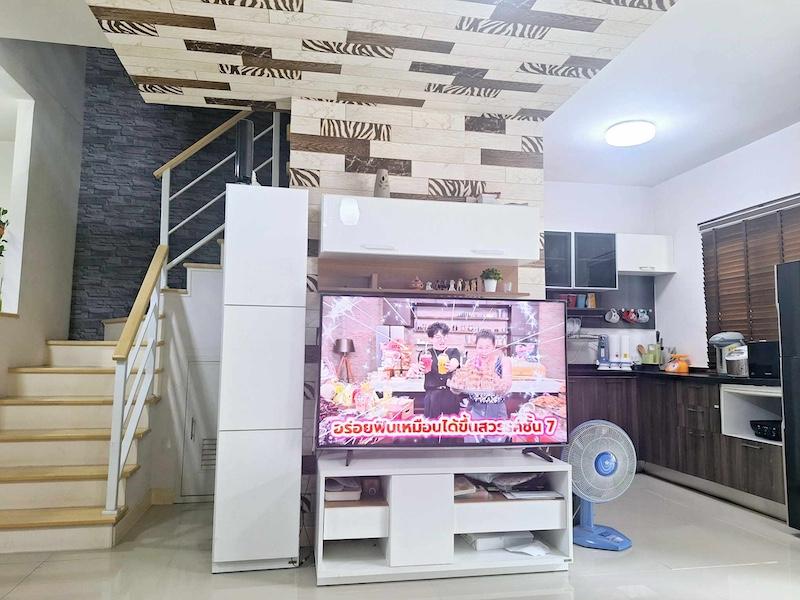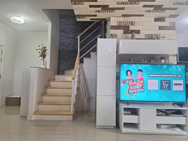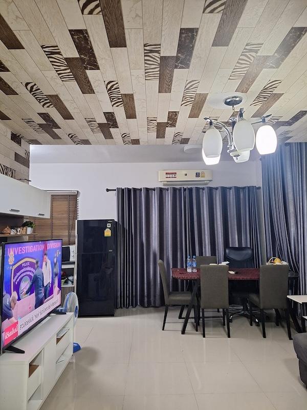 สภาพใหม่ ทั้งตัวบ้านเเละเฟอร์นิเจอร์ มีเเอร์ 3 ตัว เนื้อที่ 21 ตร.วา พื้นที่ใช้สอย 119 ตร.ม.
