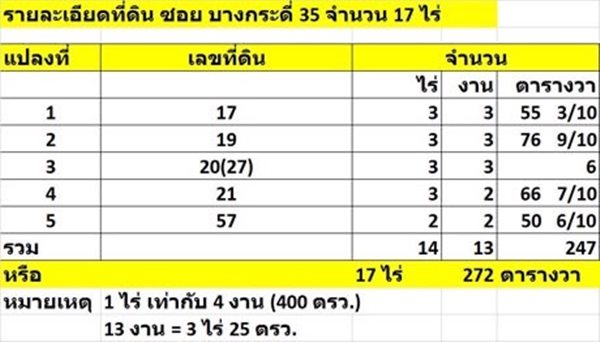 จำนวน 17 ไร่ ที่ดินสวยในซอยบางกระดี่ 35
